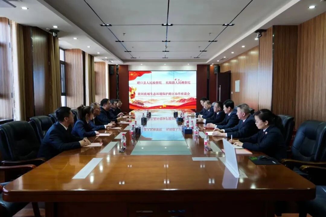 为深入贯彻习近平生态文明思想和法治思想,践行绿水青山就是金山银山理念,保障《中华人民共和国黄河保护法》实施,增强黄河流域生态保护整体合力,2023年3月28日,巴彦淖尔市磴口县人民检察院联合鄂尔多斯市杭锦旗人民检察院召开黄河流域生态保护跨区域协作座谈会。