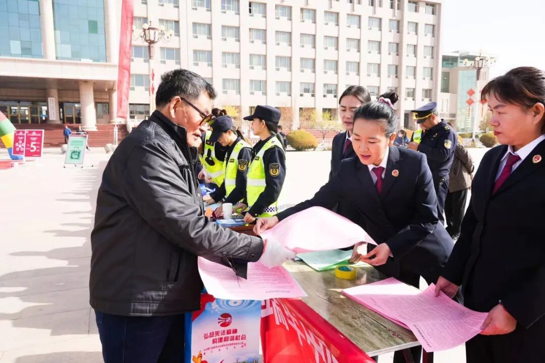 为深入学习贯彻党的二十大精神,坚定不移贯彻总体国家安全观,宣传普及国家安全知识,汇聚维护国家安全的强大力量,树牢国家安全人人有责,国家安全人人可为的思想认识。4月14日上午,在第八个全民国家安全教育日到来之际,磴口县人民检察院积极组织检察人员先后深入到磴口县富源广场与乌兰布和农场举行国家安全教育日宣传活动。