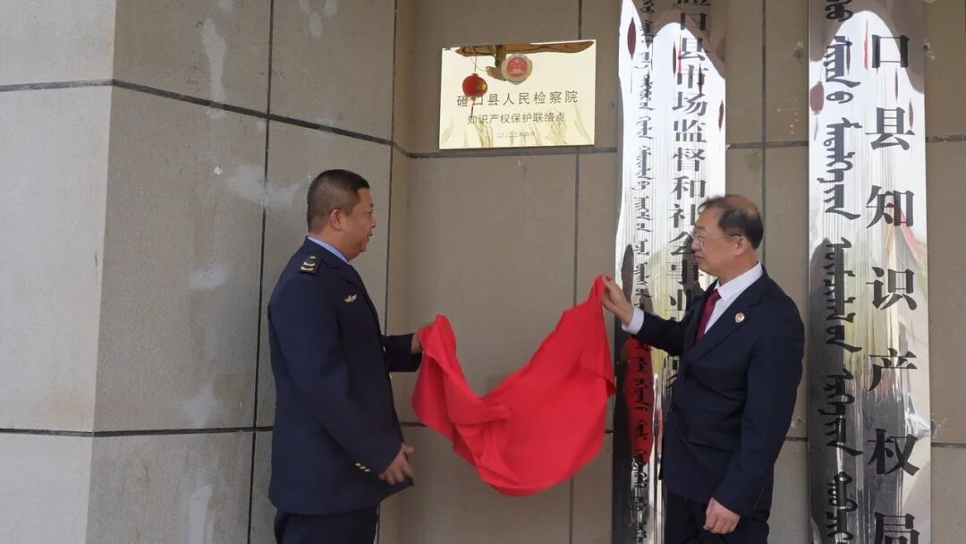 磴口县人民检察院与磴口县市场监督管理局举行磴口县人民检察院知识产权保护联络点挂牌仪式。磴口县人民检察院副检察长李东、磴口县市场监督管理局副局长杜峥共同为联络点揭牌。