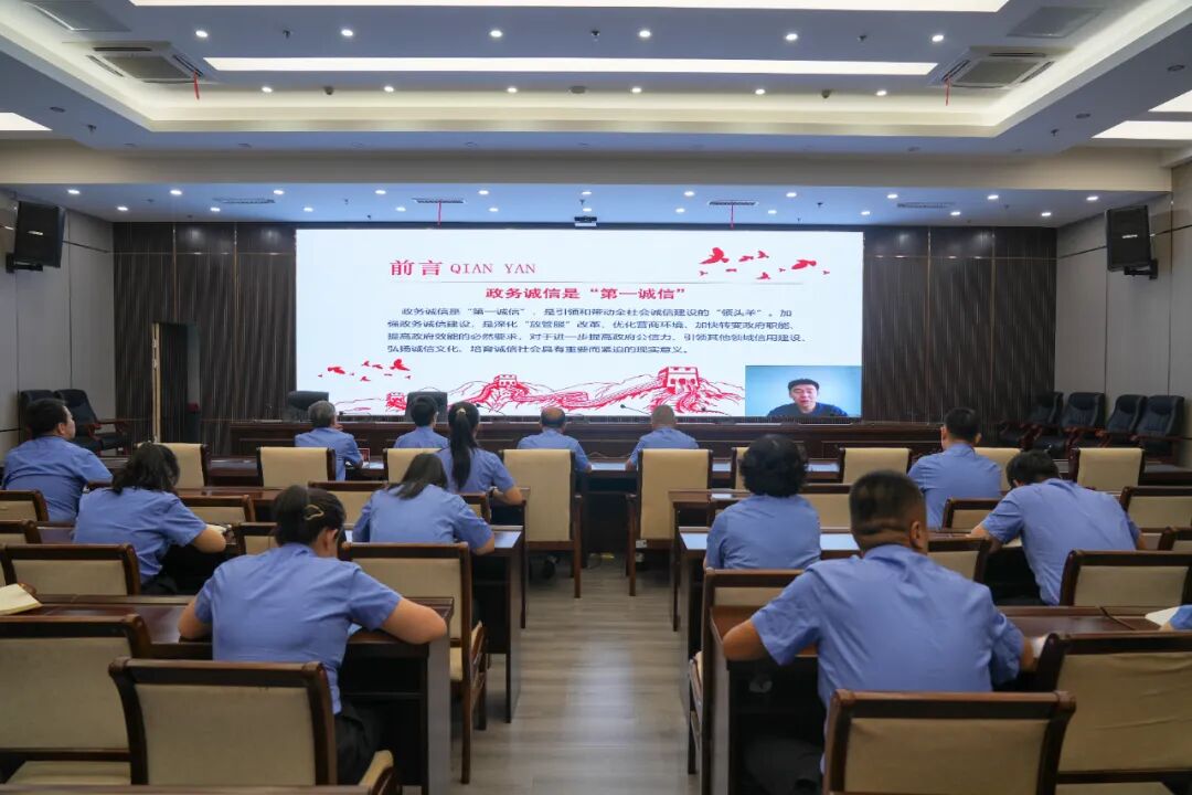 为全面贯彻党的二十大报告提出的“弘扬诚信文化,健全诚信建设长效机制”精神,进一步提升公职人员诚信履职意识和诚信行政水平,充分发挥检察机关在社会信用体系建设中的应有作用,近日,磴口县人民检察院组织全体检察人员参加政务诚信培训并观看政务诚信教育片。