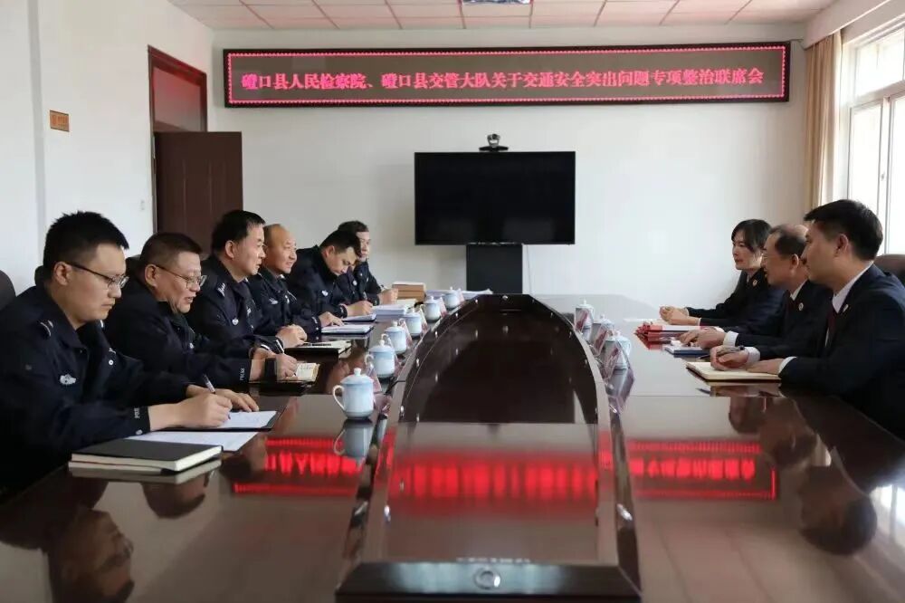专项活动开展以来,磴口县人民检察院高度重视,制定《关于联合开展道路交通安全和运输执法领域突出问题专项整治工作实施方案》,确定工作思路、制定目标任务、细化监督程序和方式,确保专项行动高效推进。2023 年4月 21日,磴口县人民检察院和巴彦淖尔市公安局交通管理支队磴口县大队召开联席会议,会上,参会人员就检察机关行政检察监督职能、磴口县交通安全执法过程中存在的问题及专项行动如何有效开展等问题展开讨论;就建立执法互助、线索移送等协作配合机制达成一致意见。