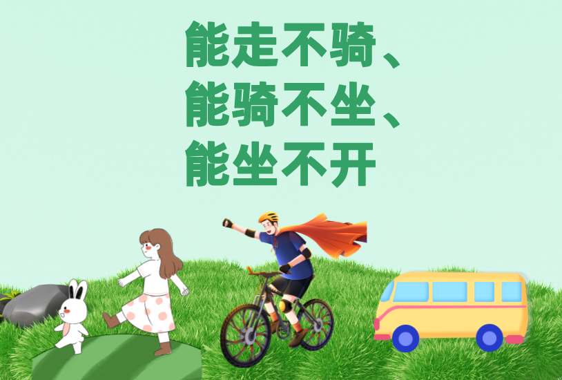 让我们在践行绿色出行方式的同时,主动宣传、倡导、推广“能走不骑、能骑不坐、能坐不开”的健康出行理念,带动更多人自觉参与到绿色低碳出行“135”行动中来,共建共享低碳、健康、有序、文明、畅通的绿色交通环境。