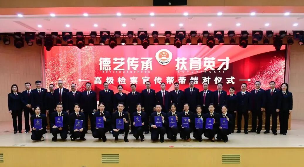 “第一次打电话联系当事人,沟通并不顺畅,我表达的内容,对方听不明白,也不理解。”福州市检察院第三检察部检察官助理小林至今都还记得,自己刚走上工作岗位时遇到的那些困难。“庆幸的是,入行7个月后,部门副主任、全国优秀公诉人陈玮成为我的导师,让我少走了不少弯路,并很快进入角色。”在福州市检察机关,像小林这样从“家门、校门”新进“院门”的“三门”青年干警不少。他们学历高,理论有功底,工作有激情,但也有实践盲区。加上近些年因退休、岗位调整等原因,员额检察官陆续退出,加快培养堪大任、能担当的年轻干警,成为建设过硬队伍的重中之重。在福州市检察院党组书记、检察长傅建飞看来,“师带徒”是中华文化的优良传统和人才培养的有效途径,“老检察”的衣钵——优秀品德、法治信仰、为民情怀需要一代又一代青年干警传承下去。2022年3月,福州市检察机关召开“德艺传承·扶育英才”高级检察官“传帮带”活动。同一时间,两级检察院“素能提升工程”全面启动,“一对一”结成师徒102对,其中刑事检察领域68对,民事检察、行政检察领域21对,公益诉讼检察领域13对。2022年3月,福州市检察院高级检察官传帮带结对仪式。