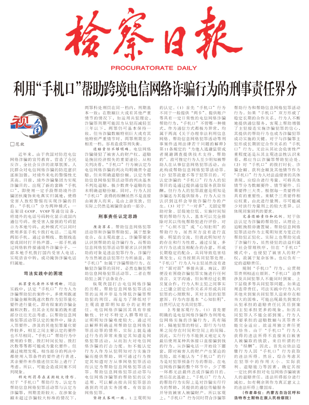 厘清罪名。帮助信息网络犯罪活动罪和诈骗罪帮助犯,属于想象竞合,在主观故意上,诈骗罪要求认识到帮助的是诈骗行为,而帮助信息网络犯罪活动罪要求认识到帮助的对象是违法犯罪行为,诈骗行为当然被违法犯罪行为所涵盖,故“手机口”如属于诈骗帮助行为,在触犯诈骗罪的同时,必然也触犯帮助信息网络犯罪活动罪,二者在帮助犯上属于法条竞合。