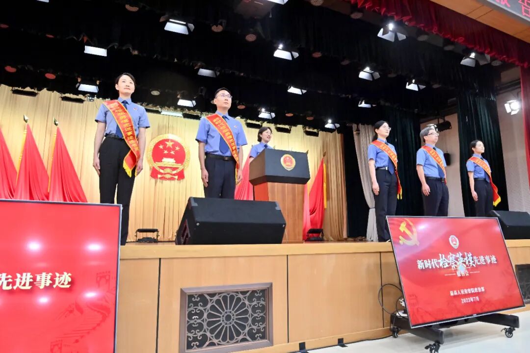 7月11日上午,最高人民检察院以“学思践悟习近平法治思想、推动检察工作高质量发展”为主题,举办新时代检察英模先进事迹报告会。章春燕、黄威、张瑜、凡俊、马玮玮5位检察英模的先进事迹感人至深、催人奋进,激励着全体检察人员见贤思齐、创先争优、求真务实、担当实干,以饱满精神状态推进新时代新征程检察工作高质量发展。