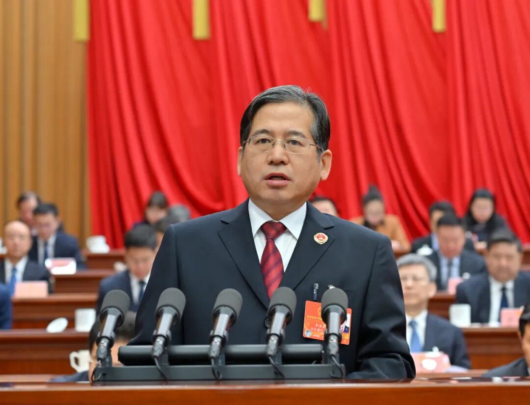 2月1日上午,自治区人民检察院检察长李永君在自治区十四届人大二次会议上作检察院工作报告。(内蒙古日报马建荃 摄)