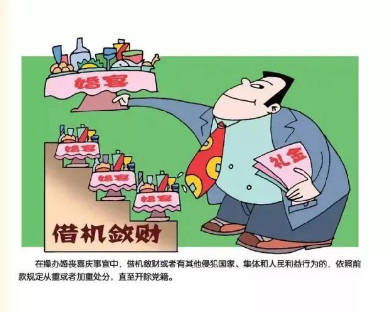 现实中,一些党员干部却以遵守风俗、顺应人情等借口,利用职权、职务上的影响,违规大操大办婚丧喜庆事宜,有的甚至借此不择手段大肆敛财,严重败坏社会风气,造成了恶劣的影响,成为群众反映强烈的热点问题。