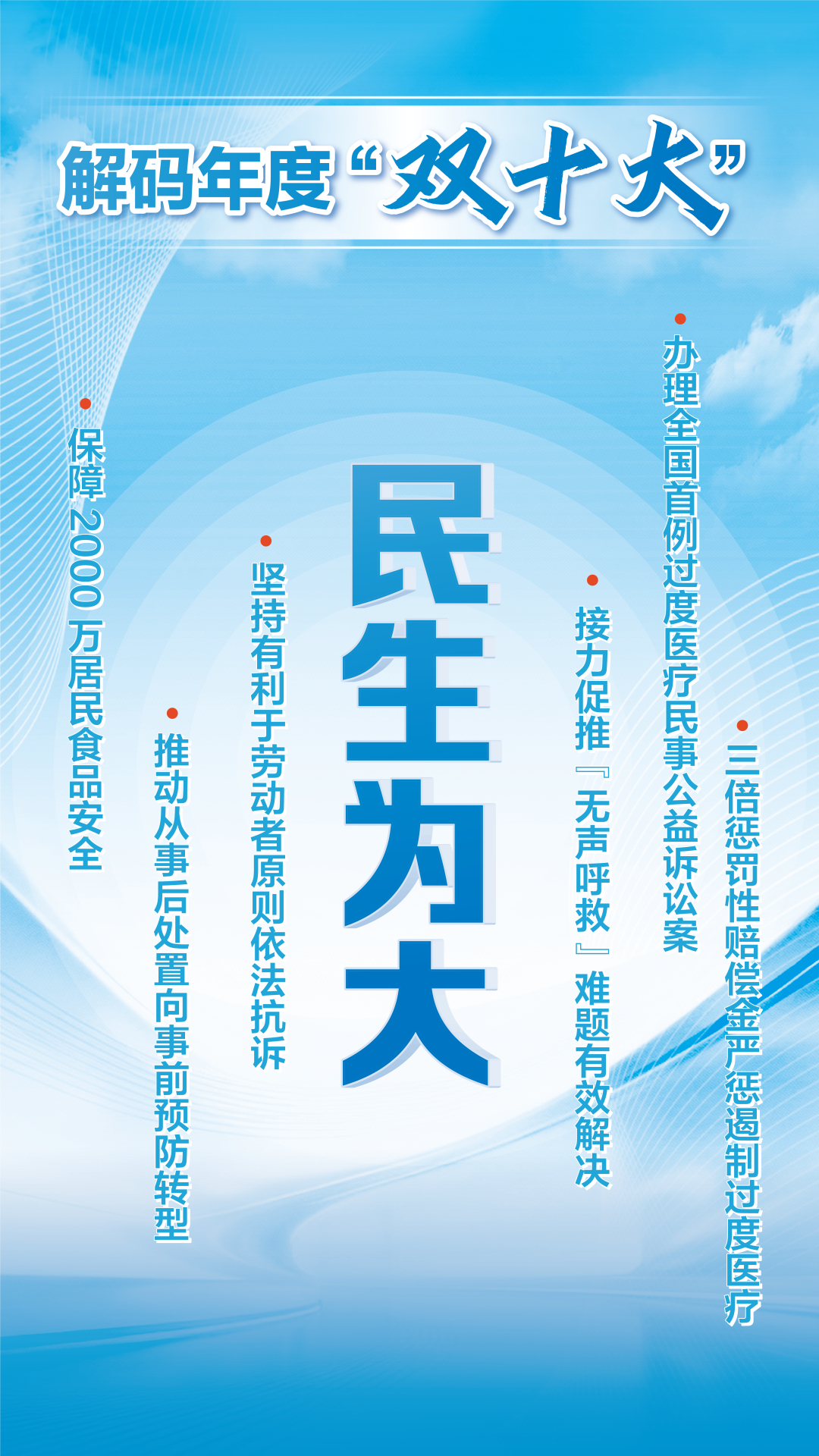 这些案例横跨劳动保障、食品安全、无障碍环境建设、医疗秩序等不同领域,却有着共同的关键词——“民生为大”,也指向同一个核心:新时代检察机关将司法为民的宏大叙事,落笔成为有力量、有温度的身边故事。