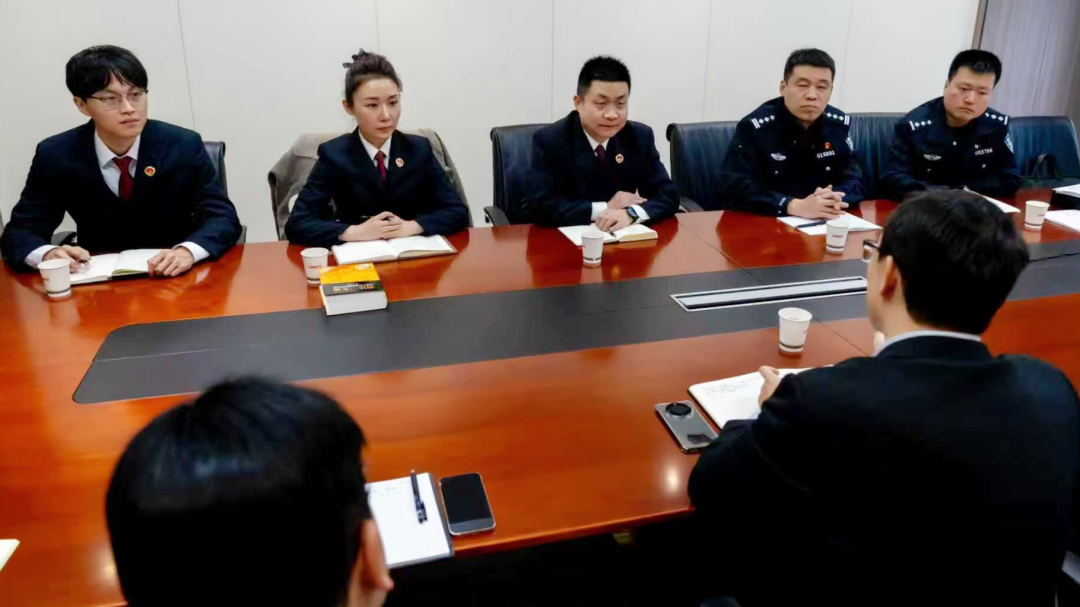 陕西省西安市检察院干警与公安机关工作人员同企业代表面对面交流,深入研究如何解决企业在跨境经营中遇到的知识产权等方面的维权难题,以提供精准司法服务。