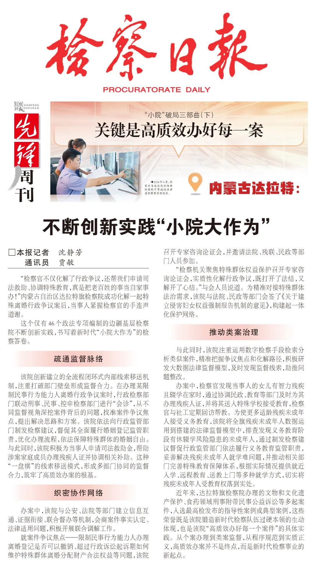 “检察官不仅化解了行政争议,还帮我们申请司法救助、协调特殊教育,真是把老百姓的事当自家事办!”内蒙古自治区达拉特旗检察院成功化解一起特殊离婚行政争议案后,当事人紧握检察官的手连声道谢。