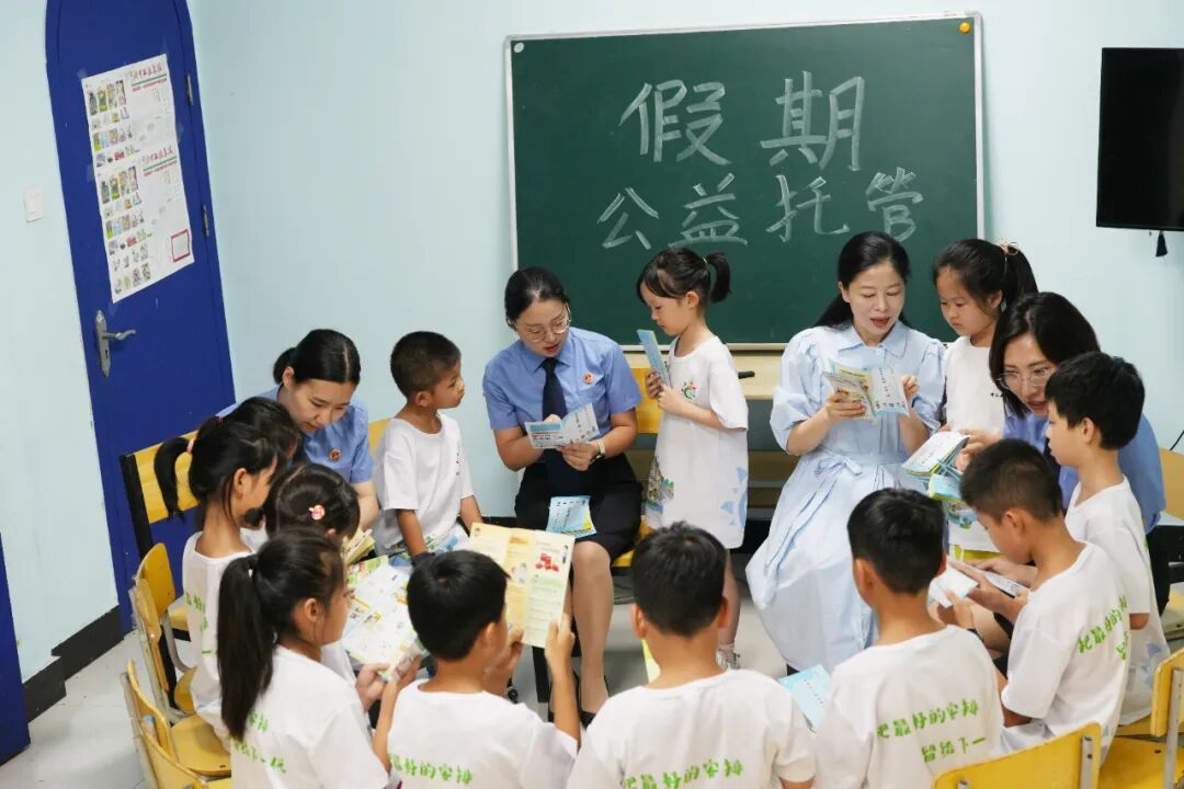 2025年7月18日,浙江省浦江县检察院检察官和祝响响代表共同走进公益暑托班,带孩子认识法律的世界。