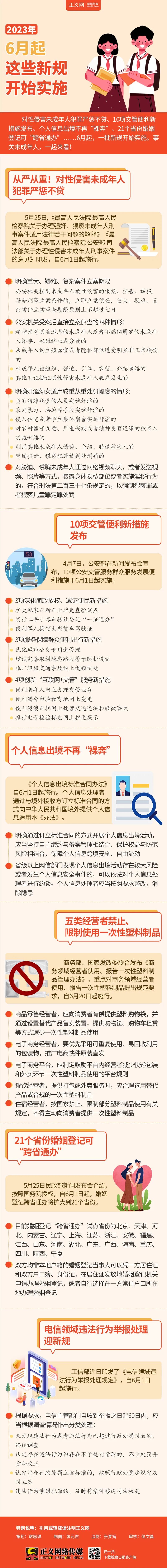 对性侵害未成年人犯罪严惩不贷、10项交管便利新措施发布、个人信息出境不再“裸奔”、21个省份婚姻登记可“跨省通办”……6月起,一批新规开始实施。事关未成年人,一起来看!