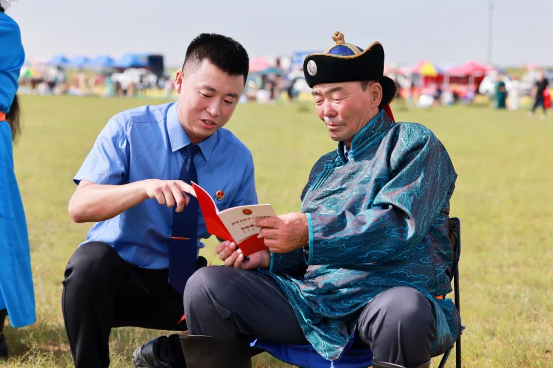 近日,锡林浩特市宝力根苏木额尔敦塔拉嘎查举办第十届牧民那达慕。锡林浩特市检察院组织检察人员深入那达慕会场,开展了一场贴近牧民生活的普法宣传活动,将法律知识送到群众身边。