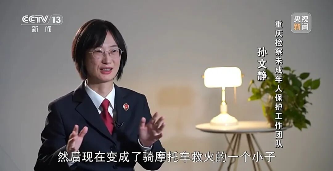 重庆检察未成年人保护工作团队 孙文静:其实我们知道这个消息是看到社工的朋友圈,社工偶然发的一个朋友圈,然后我们知道都特别开心,之前是盗窃摩托车的一帮小子,然后现在变成了骑摩托车救火的小子,感觉这个身份转变很有意思。